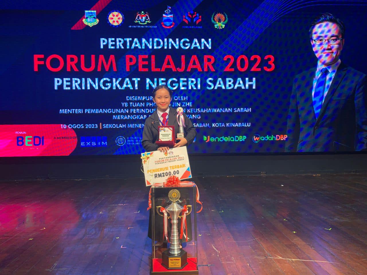 。夏娜同学也在比赛中荣获最佳主持人奖。他们将代表沙巴出战全国赛