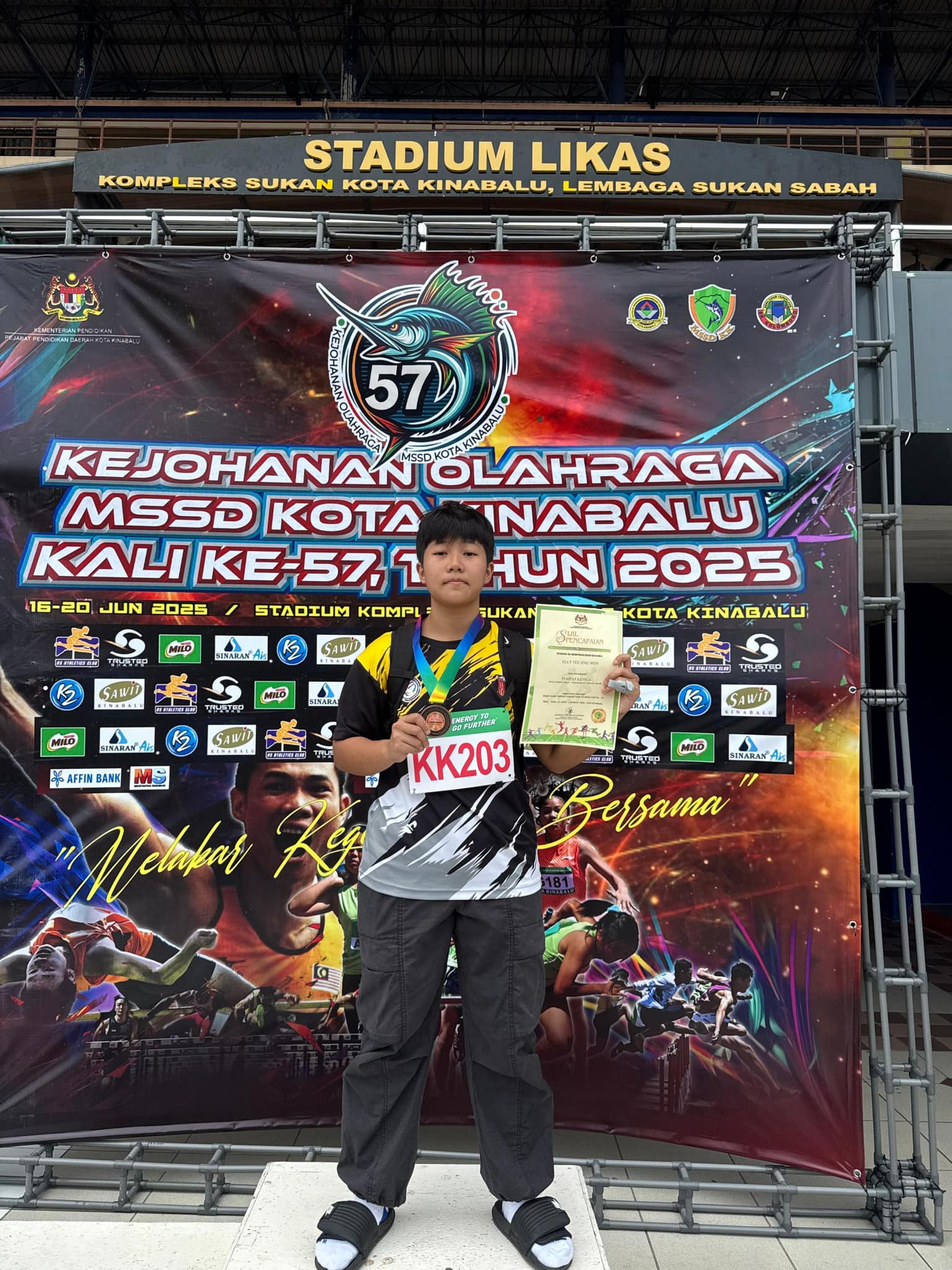 Home2025年活动 2025年活动最新消息校外活动荣誉榜 本校同学在 2025年MSSD校际田径锦标赛中获奖! By webeditor 20/06/2025 0 285 FacebookTwitterWhatsAppTelegramLINE 恭喜恭喜! 本校同学在 2025年MSSD校际田径锦标赛中获奖! 杜欣诺(高三仁)勇夺 女子七项全能冠军! 廖贤理(高三仁)在 男子八项全能项目中荣获第五名! 张宇诚(初三刚)在 男子乙组跳高项目 中摘得 铜牌! 郑靖雯(高一仁)于 女子甲组铁饼项目 中夺得 铜牌! Share FacebookTwitterWhatsAppTelegramLINE Previous article【2025年第20届建国中学教育展 · 欢迎各界参与】Next article【《重启之旅》授旗礼 | 亚庇建国中学管乐团出征MIWFest 2025】 webeditorhttps://kiankok.edu.my Related Articles 2026年活动 【董事长拿督叶参局绅:科技与体育并进,培育面向未来的建国学子】 2026年活动 【主礼嘉宾甲必丹拿督李思福:体育塑造品格,拼搏成就未来】 2026年活动 我们正在招聘 Latest Articles 2026年活动 【董事长拿督叶参局绅:科技与体育并进,培育面向未来的建国学子】 2026年活动 【主礼嘉宾甲必丹拿督李思福:体育塑造品格,拼搏成就未来】 2026年活动 我们正在招聘 2026年活动 亚庇建国中学越野赛跑| SPM成绩沙巴独中第一,董事长勉励学生:成长比分数更重要! 2026年活动 2025年SPM成绩放榜|亚庇建国中学再创佳绩! Load more