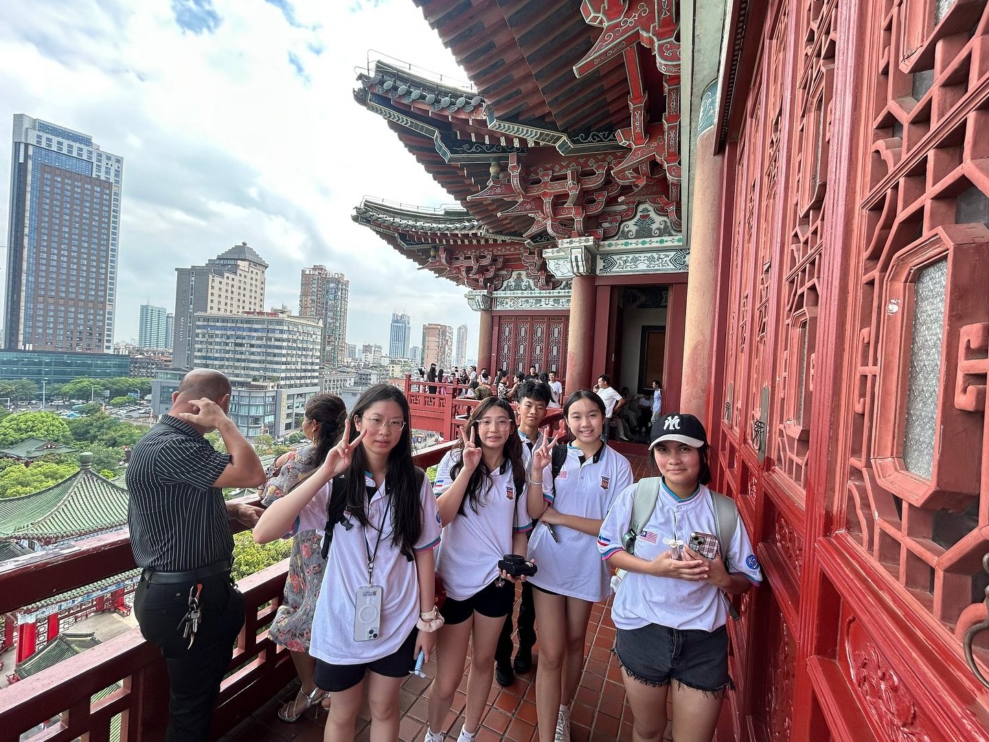 第二天的行程更加引人入胜。同学们登临滕王阁,站在历史与诗意交汇的高处,亲身感受 初唐诗人 王勃 在《滕王阁序》里写下“落霞与孤鹜齐飞,秋水共长天一色”的千古绝唱。