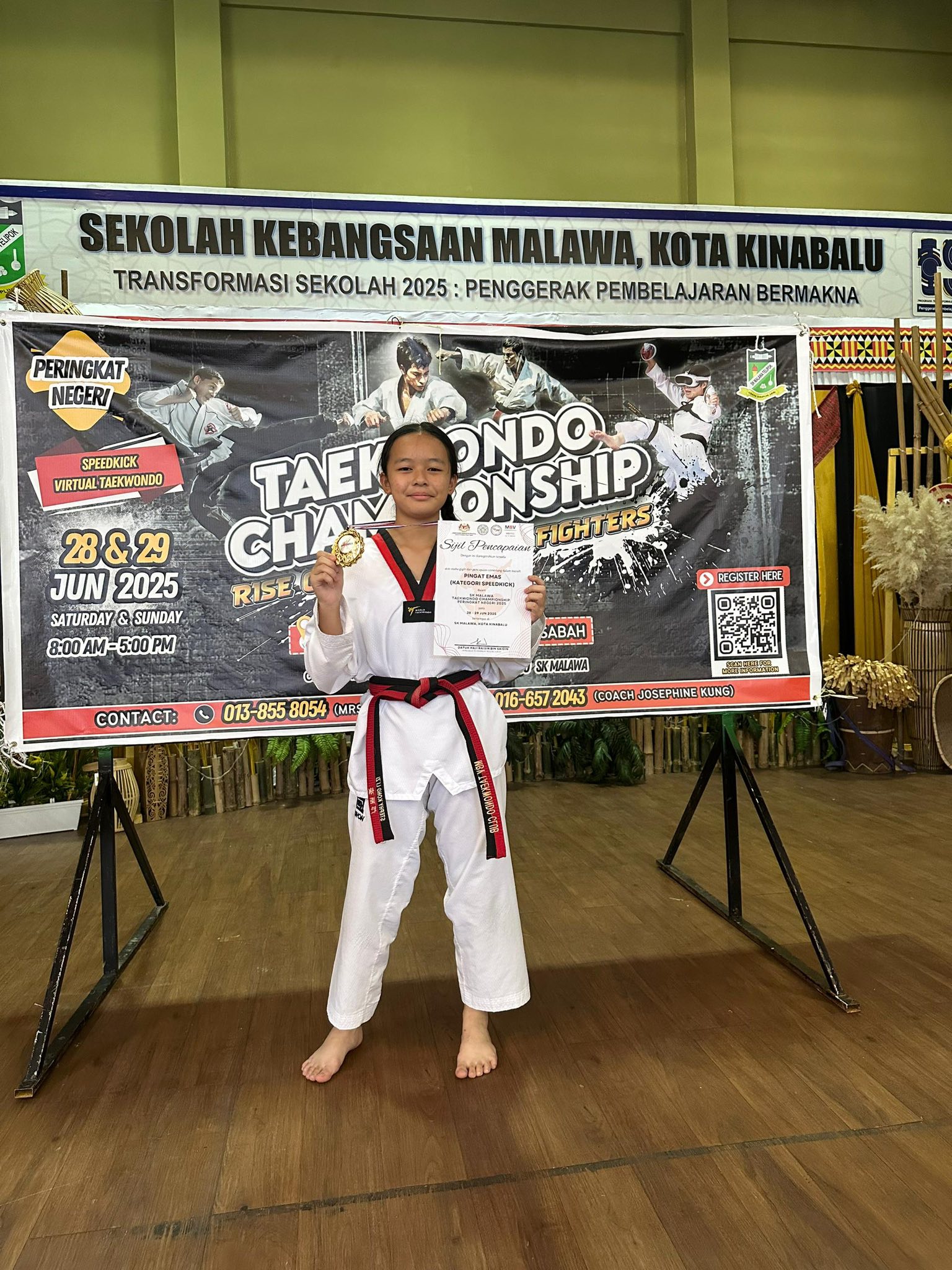 Home2025年活动 2025年活动最新消息校外活动荣誉榜 热烈恭喜 By webeditor 16/08/2025 0 181 FacebookTwitterWhatsAppTelegramLINE 本校 初一智 邝丽姿 在多项赛事中展现出色表现: SK Taekwondo Championship Peringkat Negeri 2025 • Kategori Speedkick —— 金牌 • Kategori Virtual Taekwondo —— 金牌 2nd Turaran Youth Junior Athletics Championship • 4x200m Girls U14 —— 亚军 努力与坚持终有收获,期待她未来更多精彩表现! Share FacebookTwitterWhatsAppTelegramLINE Previous article【小厨师感恩计划】Next articleMBW International Taekwondo Championship 2025 webeditorhttps://kiankok.edu.my Related Articles 2026年活动 2026年MSSD亚庇校际射箭比赛佳绩KEJOHANAN MEMANAH MSSD KOTA KINABALU 2026 2026年活动 本校餐饮班导师和学生在首次参加的【2026第五届环球厨艺联盟巡回挑战赛】中大放异彩,荣获5面铜牌! 2026年活动 恭喜本校同学在 2026年MSSD校际西洋棋比赛Kejohanan Catur Sekolah Menengah MSSD 2026 中取得好成绩! Latest Articles 2026年活动 2026年MSSD亚庇校际射箭比赛佳绩KEJOHANAN MEMANAH MSSD KOTA KINABALU 2026 2026年活动 本校餐饮班导师和学生在首次参加的【2026第五届环球厨艺联盟巡回挑战赛】中大放异彩,荣获5面铜牌! 2026年活动 恭喜本校同学在 2026年MSSD校际西洋棋比赛Kejohanan Catur Sekolah Menengah MSSD 2026 中取得好成绩! 2026年活动 【董事长拿督叶参局绅:科技与体育并进,培育面向未来的建国学子】 2026年活动 【主礼嘉宾甲必丹拿督李思福:体育塑造品格,拼搏成就未来】 Load more