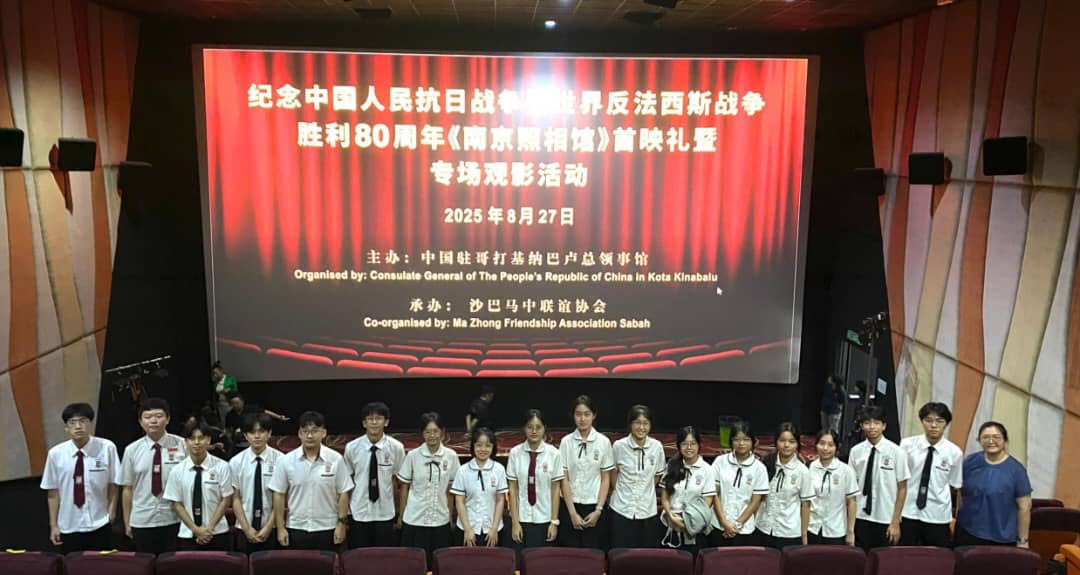 Home2025年活动 2025年活动最新消息活动 《南京照相馆》首映礼 By webeditor 28/08/2025 0 363 FacebookTwitterWhatsAppTelegramLINE 由中国驻哥打基纳巴卢总领馆主办、沙巴马中联谊协会承办,为纪念中国人民抗日战争暨世界反法西斯战争胜利80周年,电影 《南京照相馆》 首映礼于 2025年8月27日(星期三)上午9:30 在 Citymall City Cineplex 隆重举行。 本校师生有幸受邀出席这场首映礼,一同观赏这部意义深远的历史影片,缅怀历史,珍惜和平。 #南京照相馆 #首映礼 #纪念抗战胜利80周年 Share FacebookTwitterWhatsAppTelegramLINE Previous article【我们的演唱会】Next article8月29日,本校全体师生参与了一场极具启发性的专题讲座 ——《AI & Deepfakes: Know Your Rights, Protect Your Future》。 webeditorhttps://kiankok.edu.my Related Articles 2026年活动 2026年MSSD亚庇校际射箭比赛佳绩KEJOHANAN MEMANAH MSSD KOTA KINABALU 2026 2026年活动 本校餐饮班导师和学生在首次参加的【2026第五届环球厨艺联盟巡回挑战赛】中大放异彩,荣获5面铜牌! 2026年活动 恭喜本校同学在 2026年MSSD校际西洋棋比赛Kejohanan Catur Sekolah Menengah MSSD 2026 中取得好成绩! Latest Articles 2026年活动 2026年MSSD亚庇校际射箭比赛佳绩KEJOHANAN MEMANAH MSSD KOTA KINABALU 2026 2026年活动 本校餐饮班导师和学生在首次参加的【2026第五届环球厨艺联盟巡回挑战赛】中大放异彩,荣获5面铜牌! 2026年活动 恭喜本校同学在 2026年MSSD校际西洋棋比赛Kejohanan Catur Sekolah Menengah MSSD 2026 中取得好成绩! 2026年活动 【董事长拿督叶参局绅:科技与体育并进,培育面向未来的建国学子】 2026年活动 【主礼嘉宾甲必丹拿督李思福:体育塑造品格,拼搏成就未来】 Load more