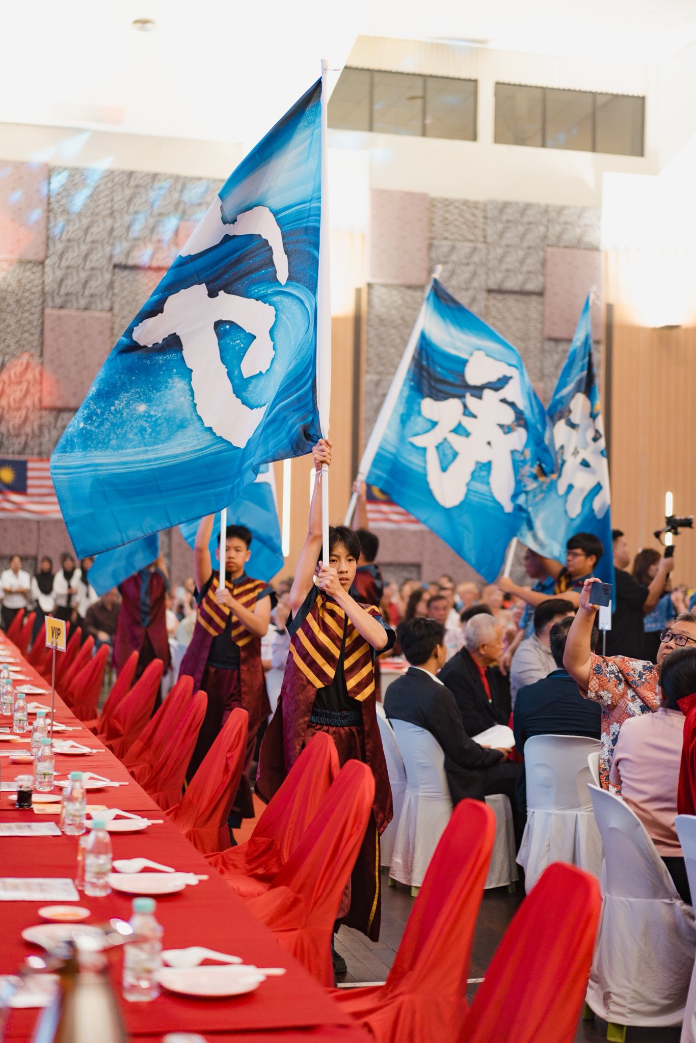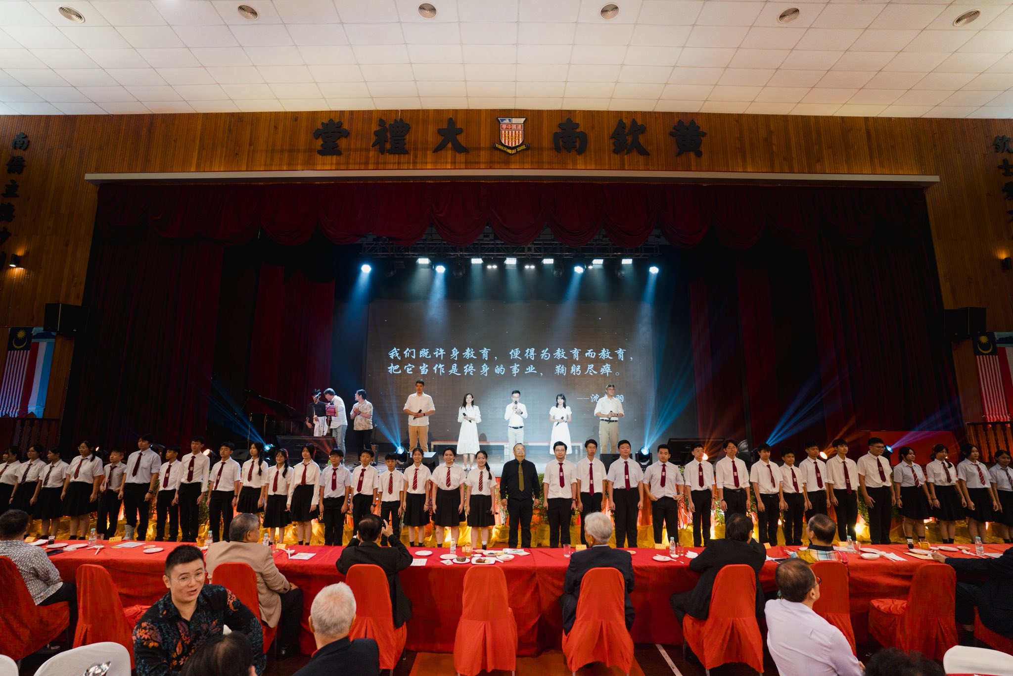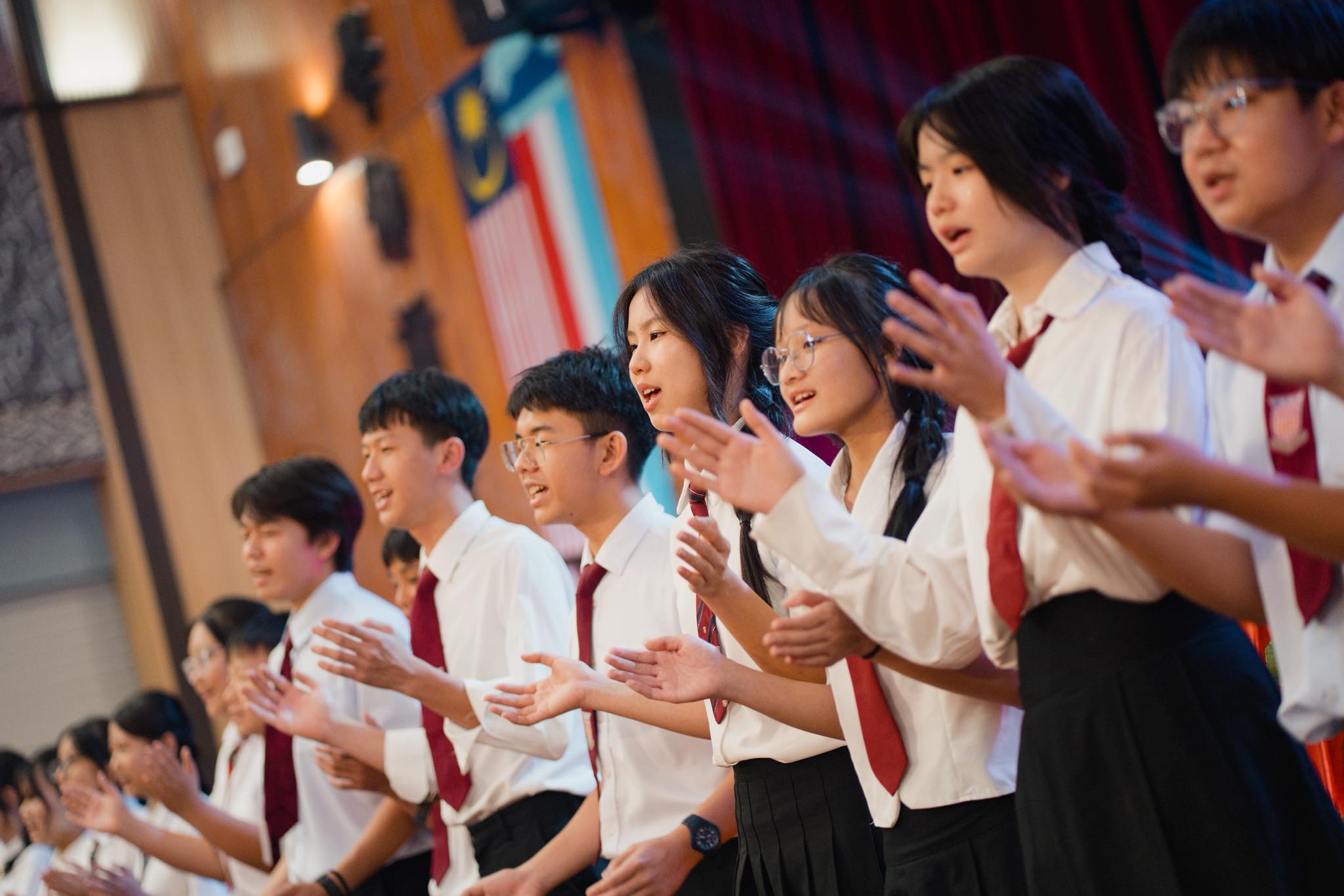 作为大会的协办与支持单位,亚庇建国中校际合唱团、24节令鼓社、舞蹈团、诗歌朗诵、幕后工作组、音响组等全体师生齐心协力,从活动筹备、舞台演出到现场接待与协调,皆展现高度的责任感与热忱。在各位指导老师与教练的带领下,活动圆满顺利完成。