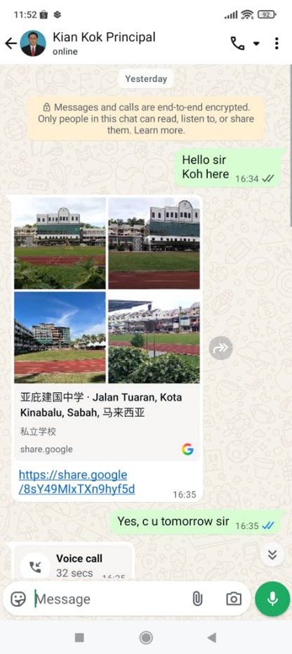 Home最新消息 最新消息 【重要通知】 By webeditor 18/09/2025 0 277 FacebookTwitterWhatsAppTelegramLINE 近日,本校接获通报,有不法之徒盗用本校校长 吴德成校长 的头像,并冒用他人电话号码 +6011-6087 9016,向商家行骗,谎称以学校名义订购物品。此举纯属欺诈行为,与本校及吴校长毫无关系。 值得遗憾的是,这并非本校第一次遇到类似情况。校方在此郑重提醒各界商家: 在接获任何有关“学校订单”的电话或信息时,请务必先直接联络学校以核实真伪。 切勿轻信来历不明的电话或讯息,以免遭受不必要的损失。 校方已针对此事报警处理,并将继续密切关注后续发展。 感谢大家的理解与配合,让我们共同守护校园与社会的诚信环境。 Share FacebookTwitterWhatsAppTelegramLINE Previous article敬致:参加2026年初一新生入学考试备考班(限UEC+SPM考生)的学生与家长Next article2025年沙巴武术锦标赛 webeditorhttps://kiankok.edu.my Related Articles 2026年活动 恭喜陈焕媖(高二智) 2026年活动 【2026年亚庇区中小学象棋选拔赛成绩】 2026年活动 曾经在厨房里默默练习的身影,如今在赛场上熠熠生辉 Latest Articles 2026年活动 恭喜陈焕媖(高二智) 2026年活动 【2026年亚庇区中小学象棋选拔赛成绩】 2026年活动 曾经在厨房里默默练习的身影,如今在赛场上熠熠生辉 2026年活动 亚庇建国中学董事会访问民都鲁开智独中圆满成功 2026年活动 2026年MSSD亚庇校际射箭比赛佳绩KEJOHANAN MEMANAH MSSD KOTA KINABALU 2026 Load more